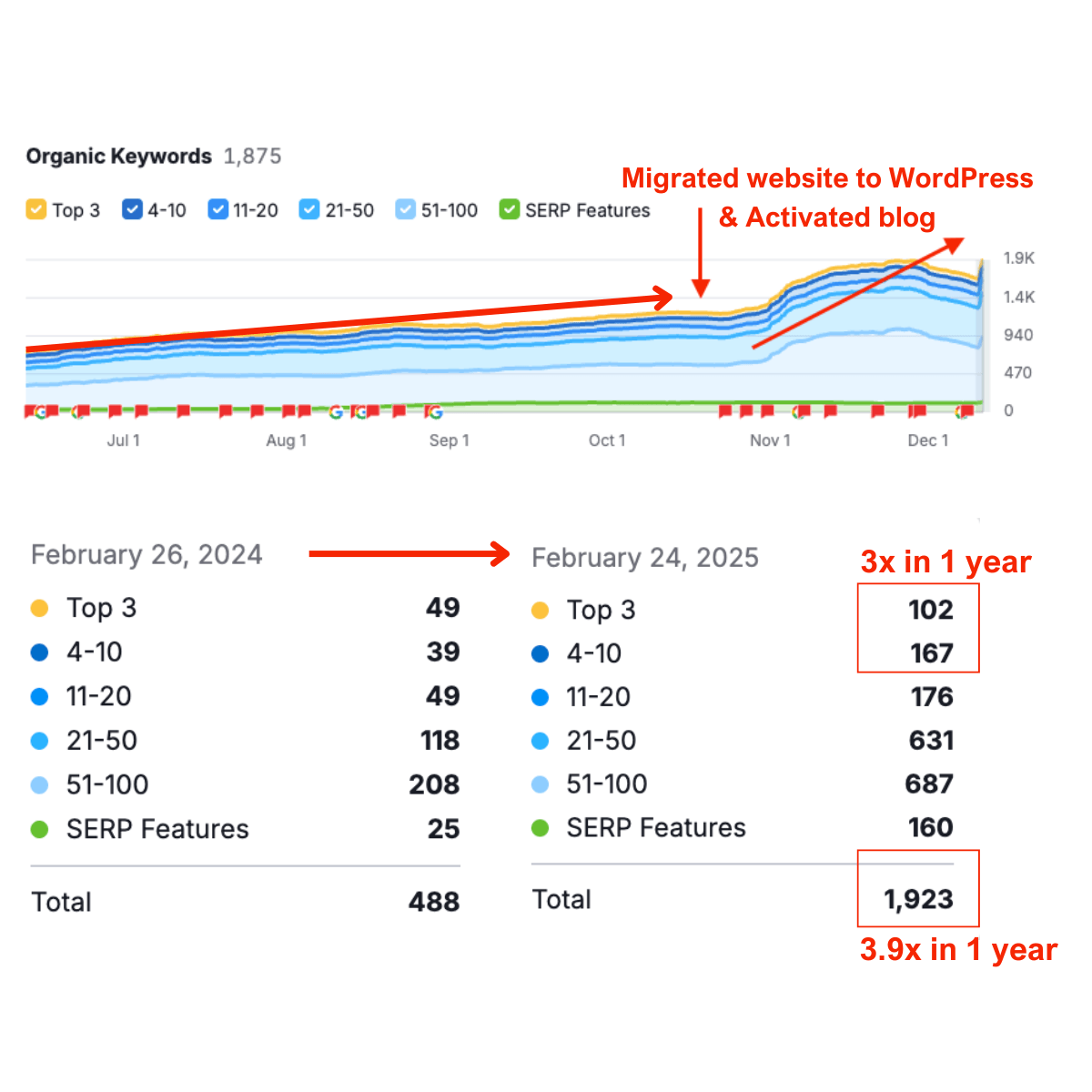 One of Alphametic’s clients experienced a 246% search traffic and visibility growth year-over-year from our SEO strategy.